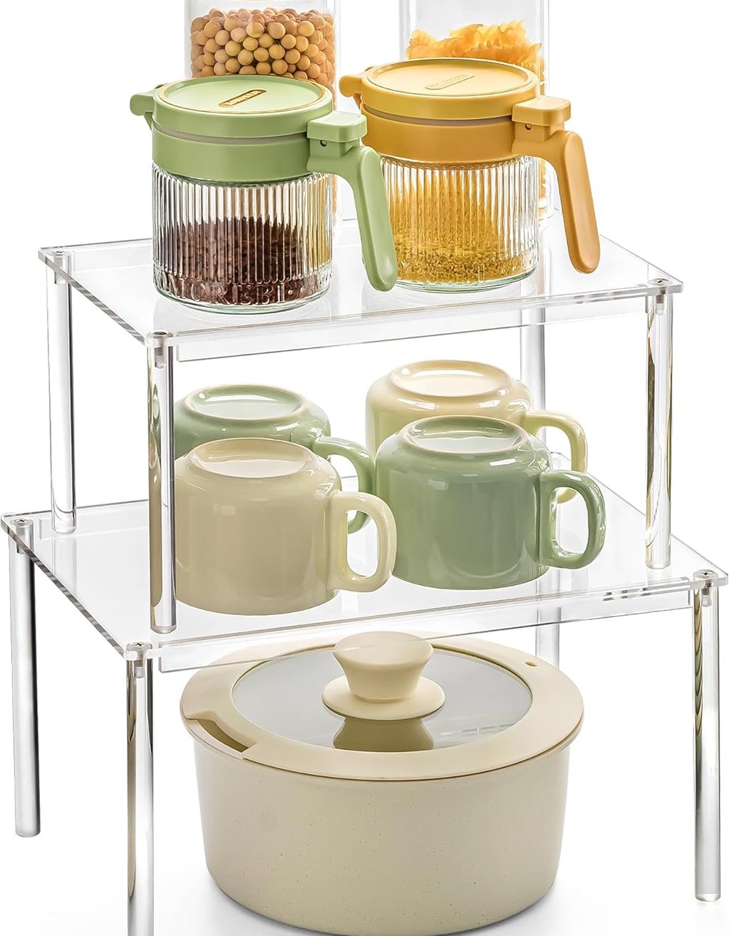 For those looking to enhance their kitchen storage with stackable shelves, numerous affordable acrylic options are readily available on platforms like Amazon. Shoppers can find products in various sizes and designs that fit their pantry’s specific dimensions and aesthetic. By investing in stackable shelves, it becomes possible to create a functional, organized, and visually appealing pantry that meets everyday storage needs.